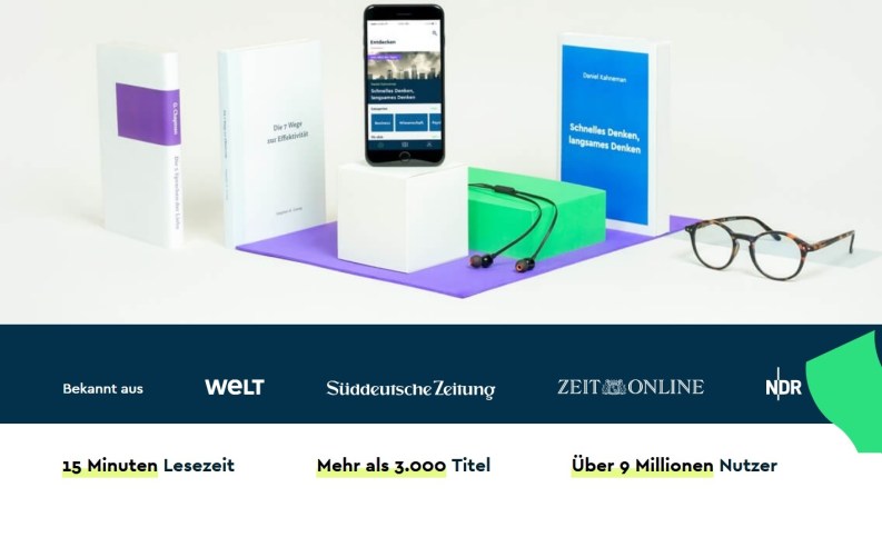 Blinkist ist eine App, die die großen Ideen der besten Sachbücher in einprägsame Kurztexte verpackt und erklärt. Die Inhalte der mittlerweile über 3.000 Titel starken Bibliothek reichen von Sachbuch-Klassikern, über populäre Ratgeber bis hin zu diskutierten Neuerscheinungen. Basierend auf wissenschaftlichen Erkenntnissen wird jeder Titel von speziell geschulten Autoren aufbereitet und dem Nutzer als Kurztext und Audiotitel zur Verfügung gestellt.