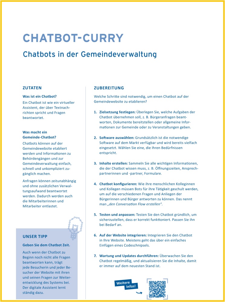 Rezept 7: Gemeindemitarbeiter entlasten und den Bürgern auch an Feiertagen viel Gemeindeservice bieten. Das können die kleinen intelligenten und gut programmierten Chatbots!