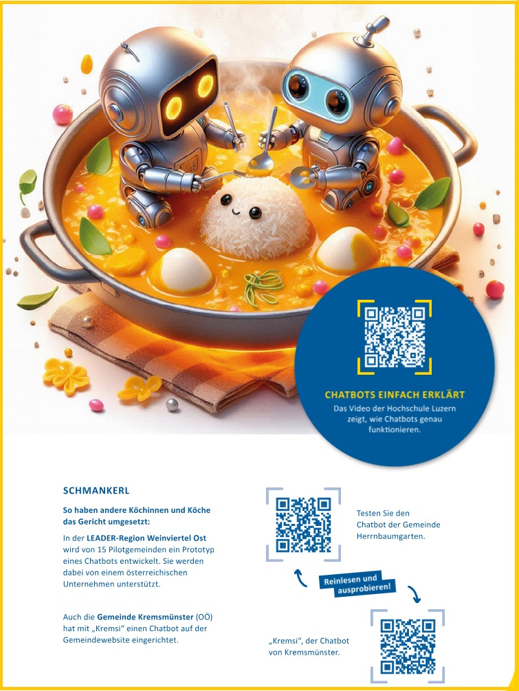 Das Land Niederösterreich hat ein Rezeptbuch für Gemeinden herausgegeben, wie man die digitale Veränderung zum größtmöglichen Nutzen für die Menschen und unter den Vorzeichen höchster Effizienz und Vereinfachung für die Mitarbeiter schafft. Hier gibts Rezept 7: Gemeindemitarbeiter entlasten und den Bürgern auch an Feiertagen viel Gemeindeservice bieten. Das können die kleinen intelligenten und gut programmierten Chatbots!